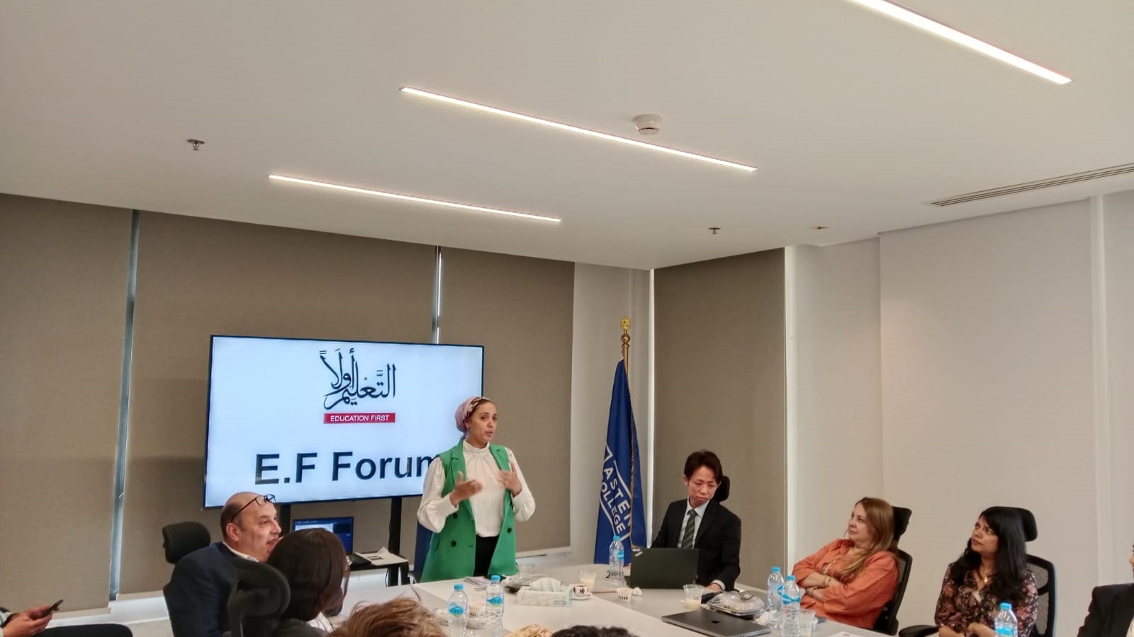أدار اللقاء الدكتورة /سلمى البكري رئيس مجلس أمناء مؤسسة التعليم أولاً والدكتور/محمود حمزة الرئيس التنفيذي لمؤسسة التعليم أولاً ، والدكتورة/سحر فؤاد المستشار التعليمي بمؤسسة التعليم أولاً